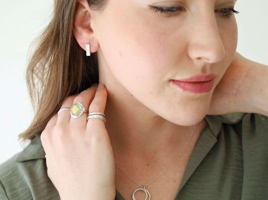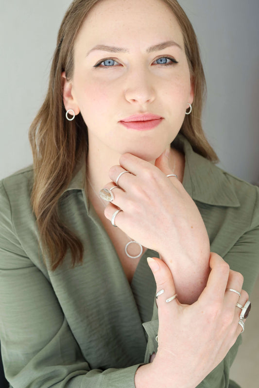 A selection of sterling silver earrings, made using 100% recycled silver.