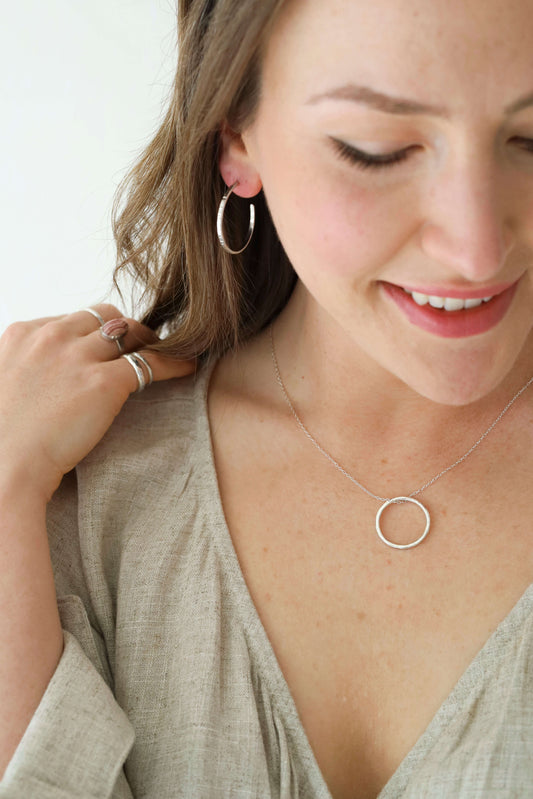 Medium Hammered Sterling Silver Hoops
